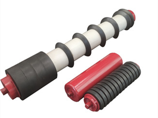螺旋托輥主要用來(lái)清理粘附在膠帶上的雜物,并可以起到調(diào)偏作用。庫(kù)橋機(jī)器是螺旋橡膠托輥廠家,公司提供各種規(guī)格型號(hào)的帶式輸送機(jī)螺旋托輥。